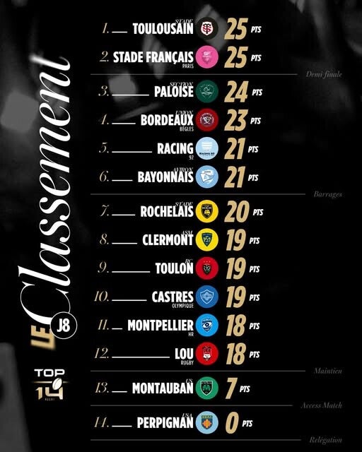 Toulouse prend la tête du classement !