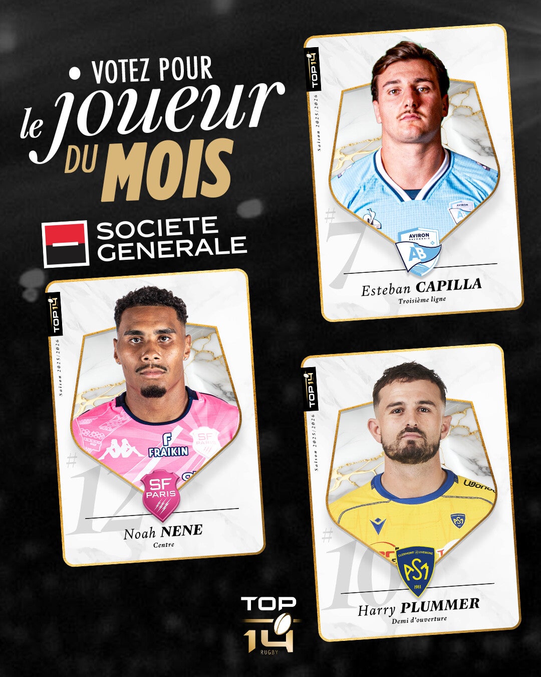 - Dernière ligne droite pour élire ton Joueur duMois Société Générale Rugby! *